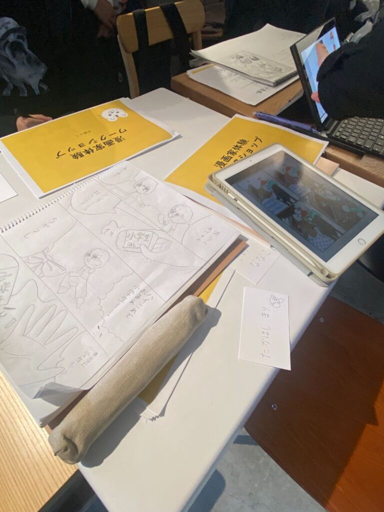 当日は、現役マンガ家のとら先生による「漫画家体験ワークショップ」も同時開催。短い時間で集中して、それぞれの作品を完成させていました!