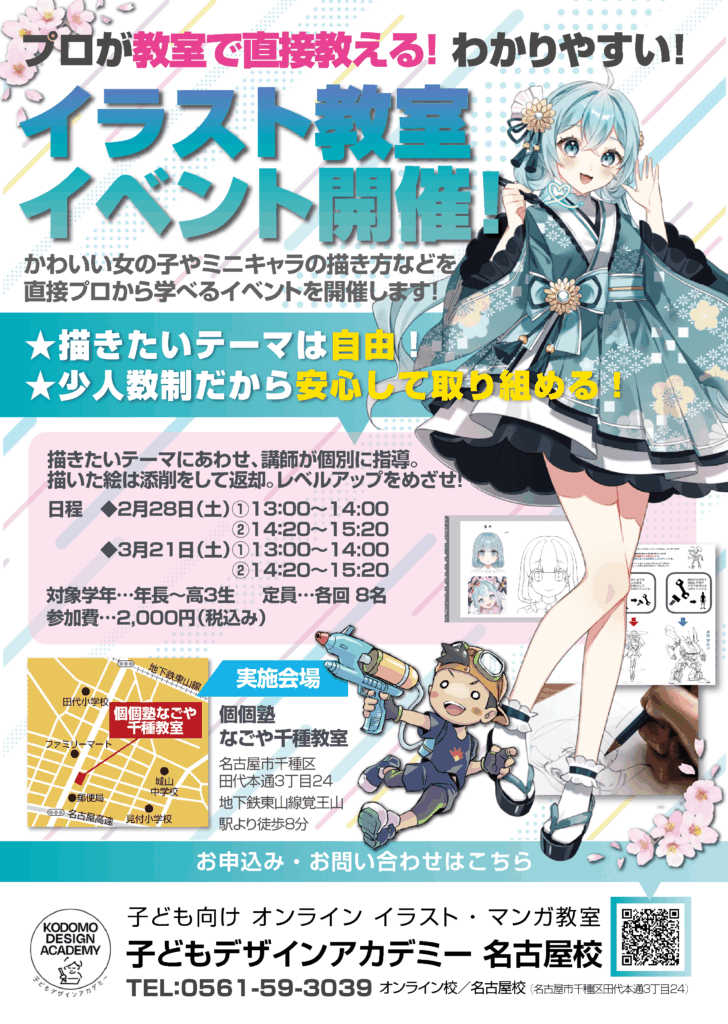 この春、子どもデザインアカデミー名古屋校では、教室で実際にプロの先生にイラストを教えてもらえるイベントを開催いたします!